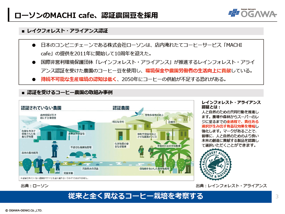 2.ローソンのMACHI cafe、認証農園豆を採用