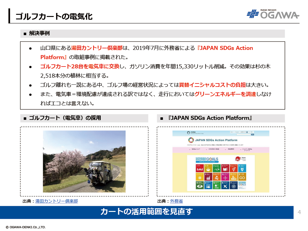 - 山口県にある湯田カントリー倶楽部は、2019年7月に外務省による『JAPAN SDGs Action Platform』の取組事例に掲載された。
