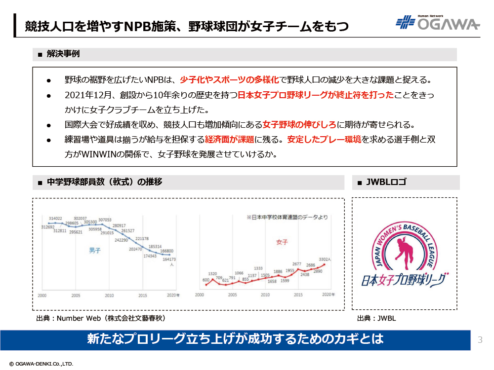 2. 競技人口を増やすNPB施策、野球球団が女子チームをもつ