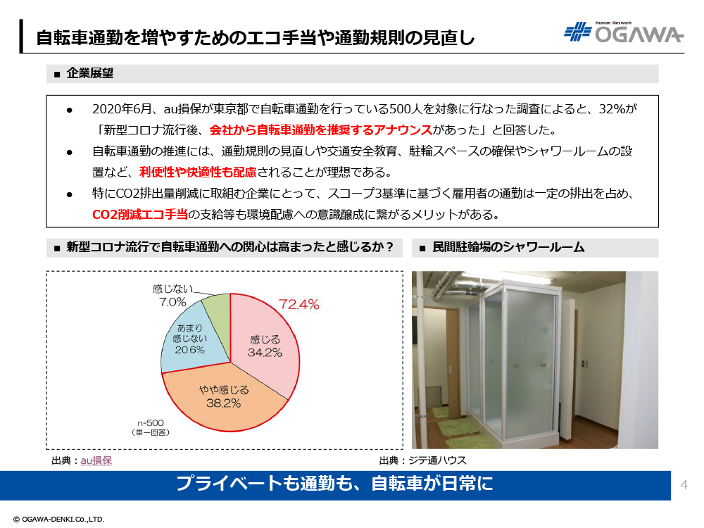 3. 自転車通勤を増やすためのエコ手当や通勤規則の見直し