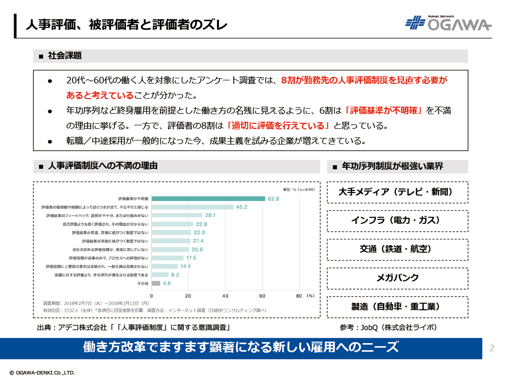 - 転職/中途採用が一般的になった今、成果主義を試みる企業が増えてきている。