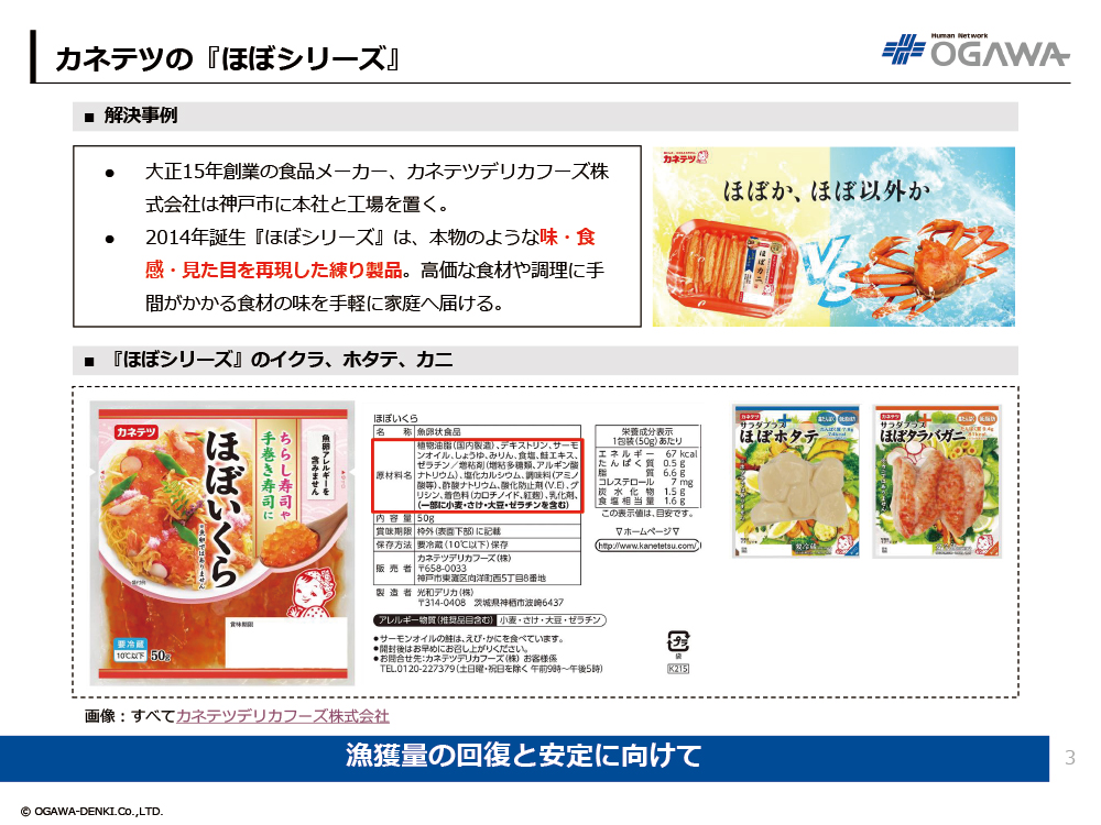 - 2014年誕生『ほぼシリーズ』は、本物のような味・食感・見た目を再現した練り製品。高価な食材や調理に手間がかかる食材の味を手軽に家庭へ届ける。