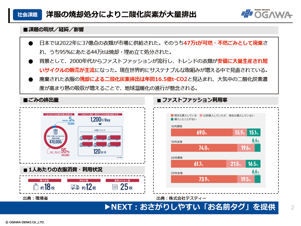 1. 洋服の焼却処分により二酸化炭素が大量排出