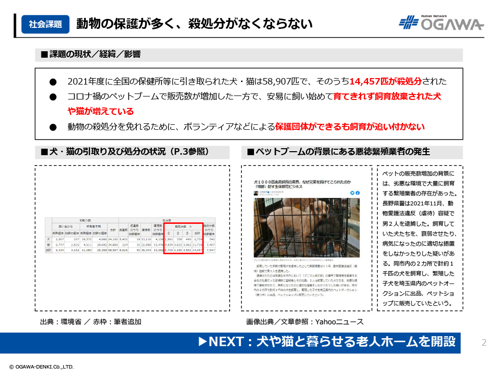 - 保護犬を受け入れるための支援やコンサルを行う企業は乏しく、動物を受け入れる先へのサポート体制が足りないのではないか
