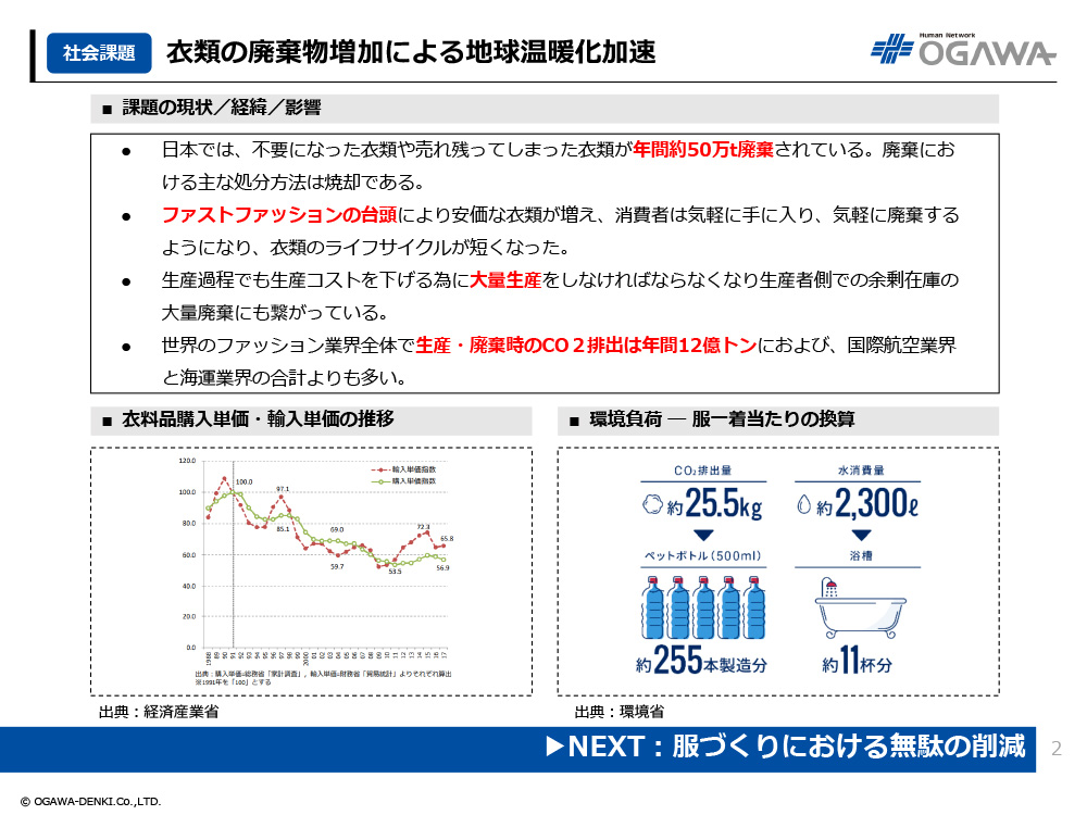 1. 衣類の廃棄物増加による地球温暖化加速