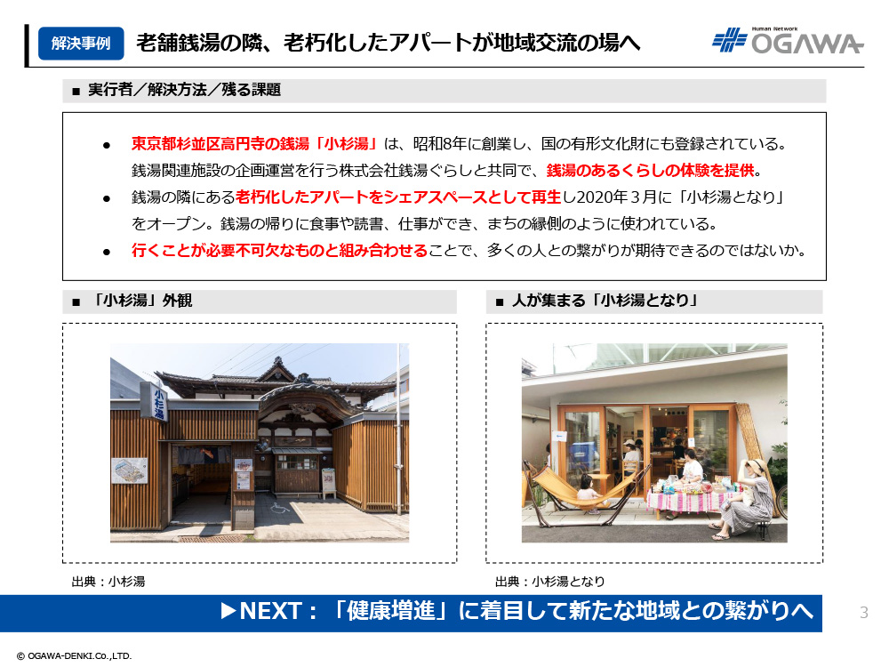 - 東京都杉並区高円寺の銭湯「小杉湯」は、昭和8年に創業し、国の有形文化財にも登録されている。銭湯関連施設の企画運営を行う株式会社銭湯ぐらしと共同で、銭湯のあるくらしの体験を提供。