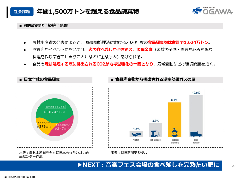 - 農林水産省の発表によると、 廃棄物処理法における2020年度の食品廃棄物は合計で1,624万トン。