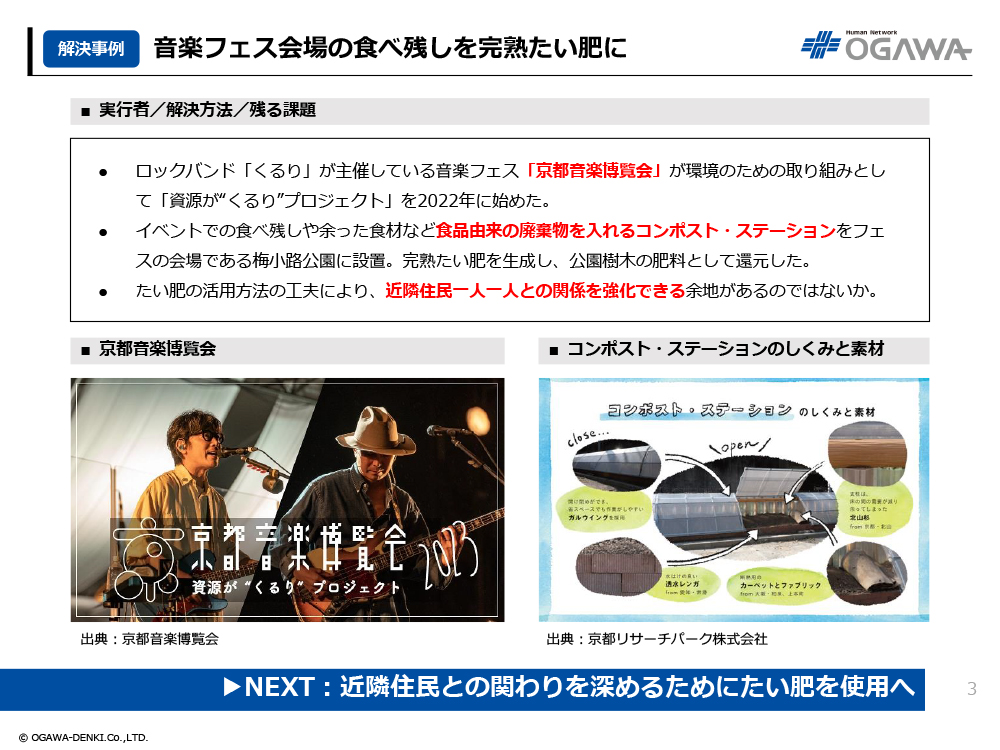 2.音楽フェス会場の食べ残しを完熟たい肥に