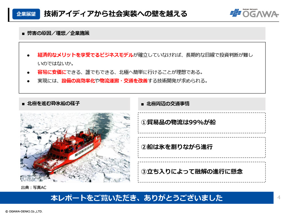 - 容易に安価にできる、誰でもできる、北極へ簡単に行けることが理想である。