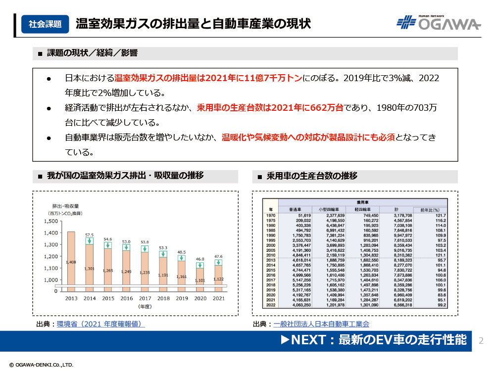 1.温室効果ガスの排出量と自動車産業の現状
