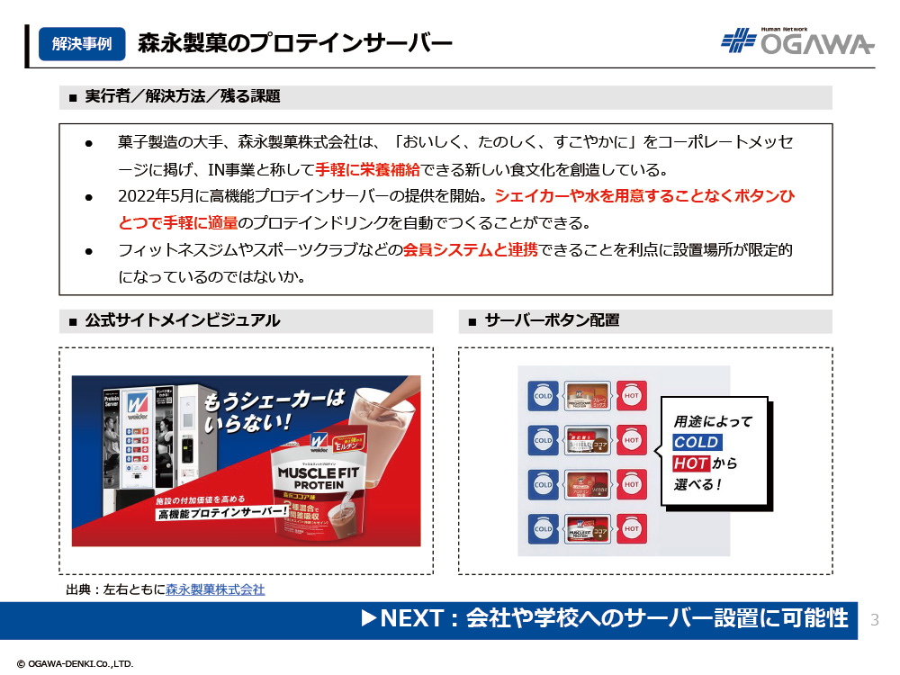 - 2022年5月に高機能プロテインサーバーの提供を開始。シェイカーや水を用意することなくボタンひとつで手軽に適量のプロテインドリンクを自動でつくることができる。