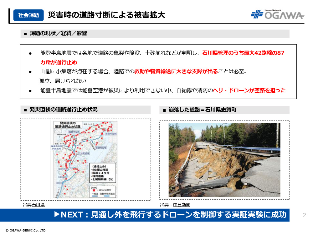 - 能登半島地震では能登空港が被災により利用できない中、自衛隊や消防のヘリ・ドローンが空路を担った