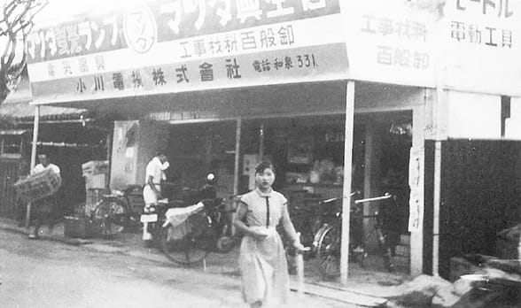 1960年に発表された「所得倍増計画」により、経済活動が活発化し、人々の生活が豊かになった昭和30年代後半。家電製品は、カラーテレビ・クーラー・自動車が“3C”として注目を集め、住環境の整備も急速に進み、各地で 戸建て住宅や公団住宅の建設が相次いでいました。今後しばらく家電と住宅のブームが続くと予測した小川亥三夫は、事業を拡大するため、設立しました。