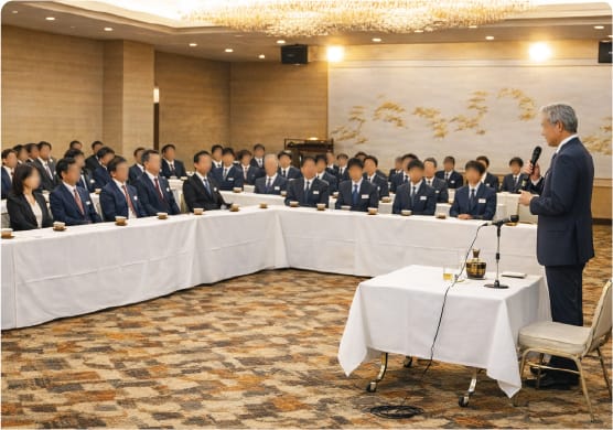 グループ会社の発展の為、会員相互の深い信頼関係と幹部社員としての自覚を促すとともに、幹部候補社員の育成を目的としています。